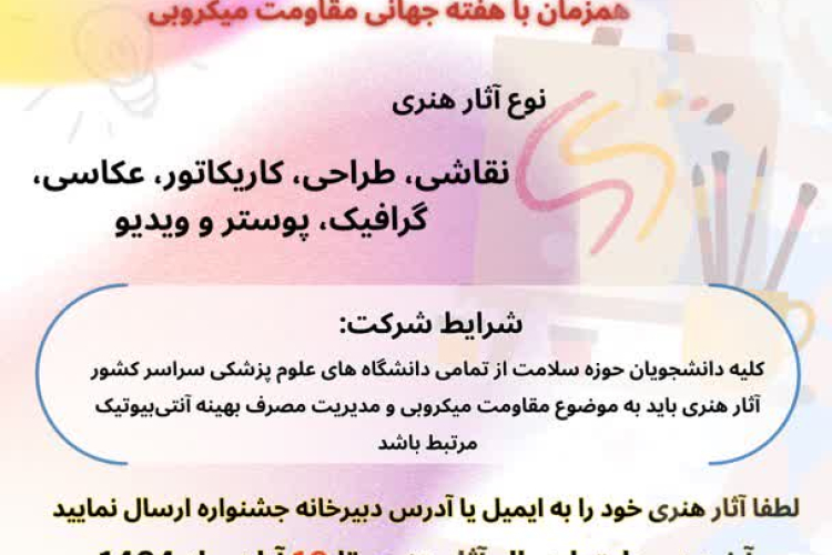 💠دومین جشنواره هنری دانشجویی مقاومت میکروبی و مدیریت مصرف آنتی بیوتیک ها