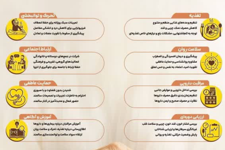 ۸ لغایت ۱۴ مهرماه۱۴۰۴ - هفته ملی سالمندان با شعار «حفظ کرامت، ارتقای سلامت و کیفیت زندگی سالمندان با گام های محله محور»