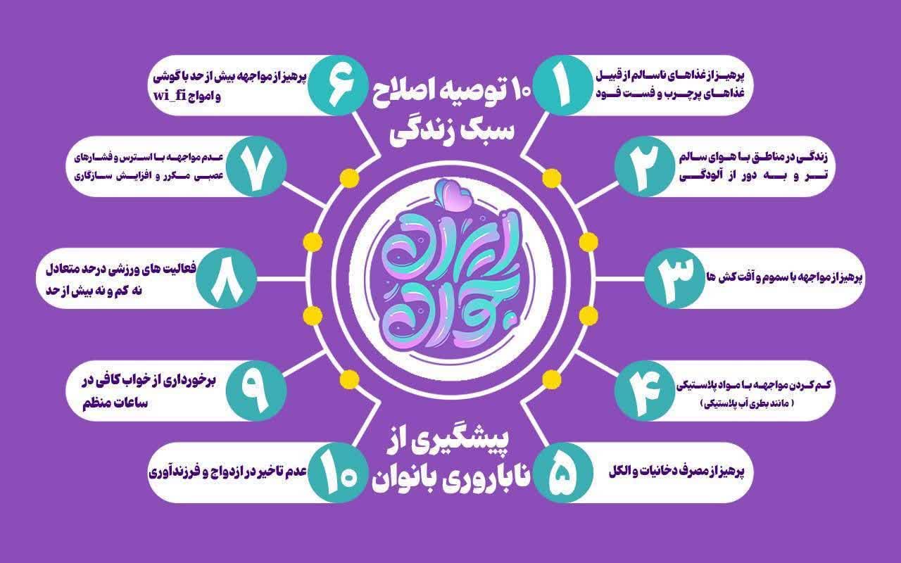 ✅ده توصیه اصلاح سبک زندگی برای پیشگیری از ناباروری بانوان Submitted by admin on 27 October 2025 ده توصیه اصلاح سبک زندگی برای پیشگیری از ناباروری بانوان #جمعیت