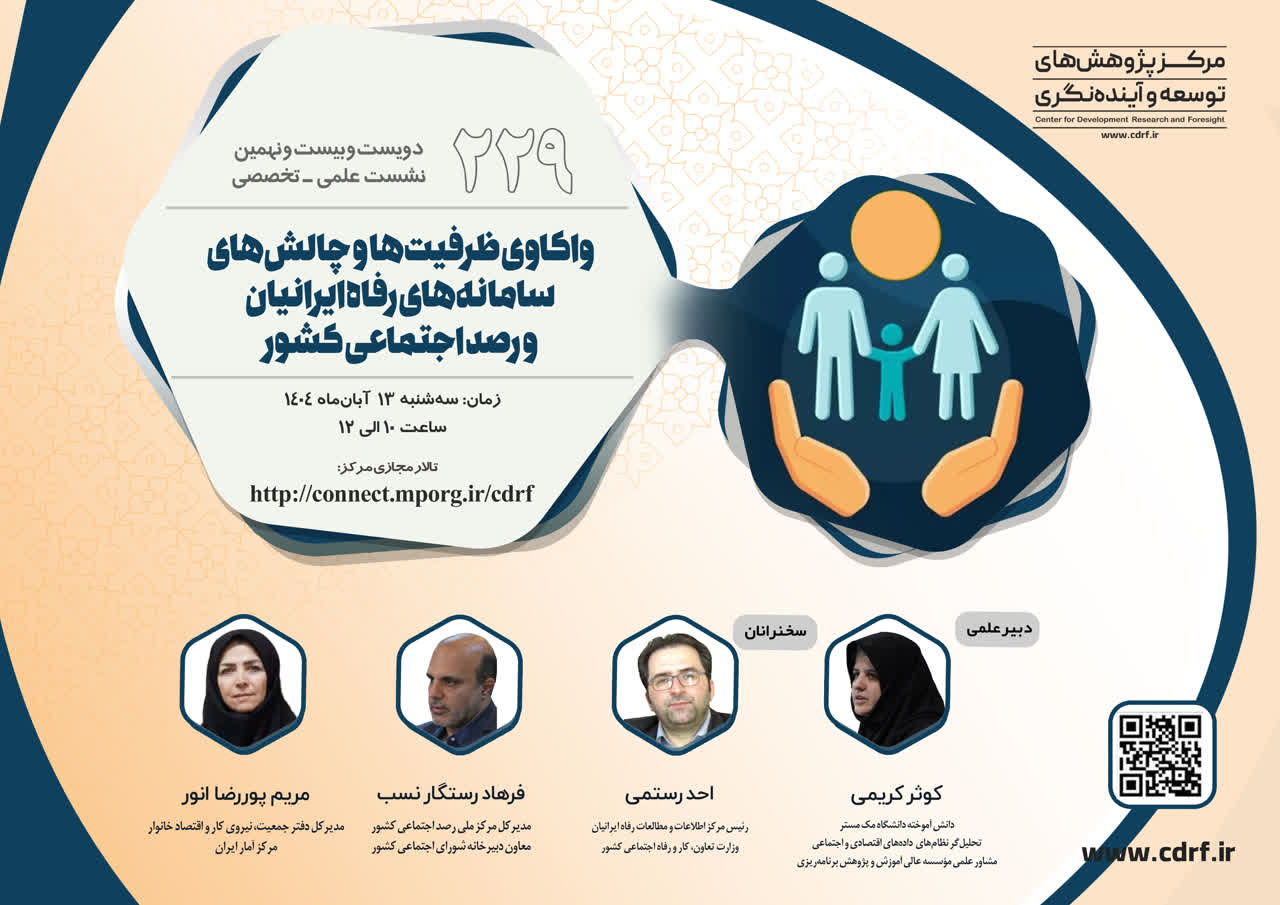 دعوت در نشست تخصصی با عنوان چالش های سامانه های رفاه ایرانیان سه شنبه 13/8/1404 دعوت در نشست تخصصی با عنوان چالش های سامانه های رفاه ایرانیان سه شنبه 13/8/1404
