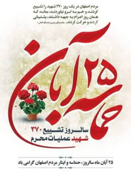 25 آبانماه روز حماسه و ایثار مردمان مجاهد و خستگی ناپذیر اصفهان گرامی باد. 25 آبانماه روز حماسه و ایثار مردمان مجاهد و خستگی ناپذیر اصفهان گرامی باد.