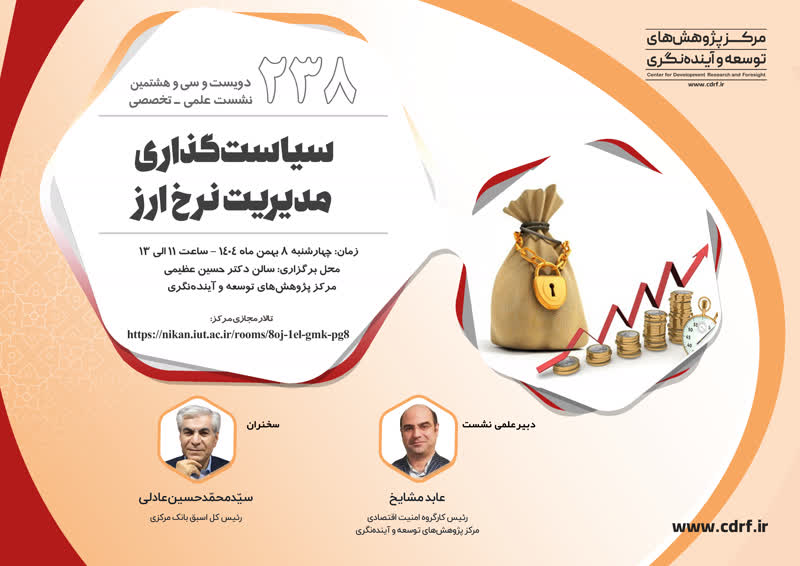 دعوت به نشست علمی تخصصی با عنوان سیاست گذاری نرخ ارز دعوت به نشست علمی تخصصی با عنوان سیاست گذاری نرخ ارز چهارشنبه 8/11/1404